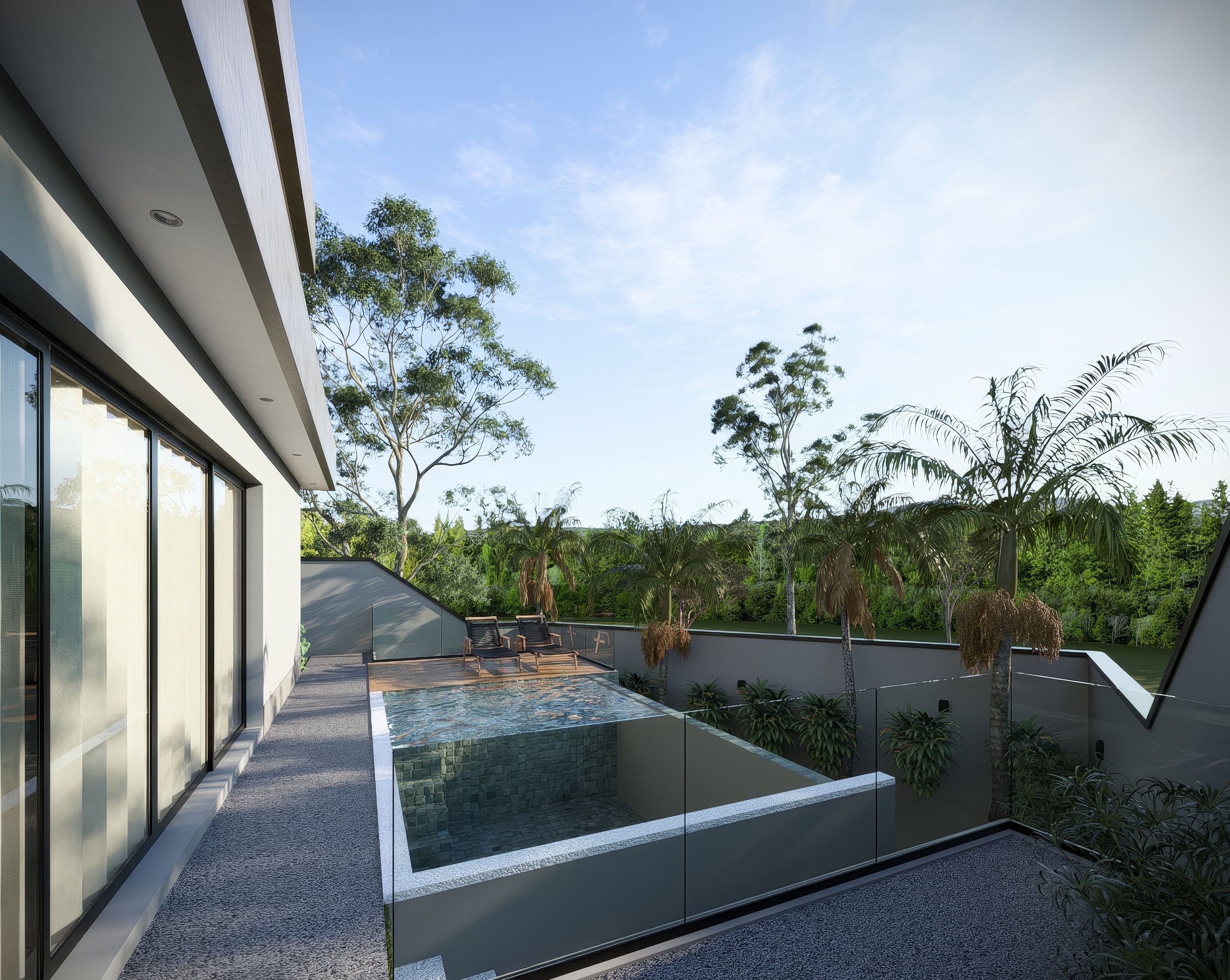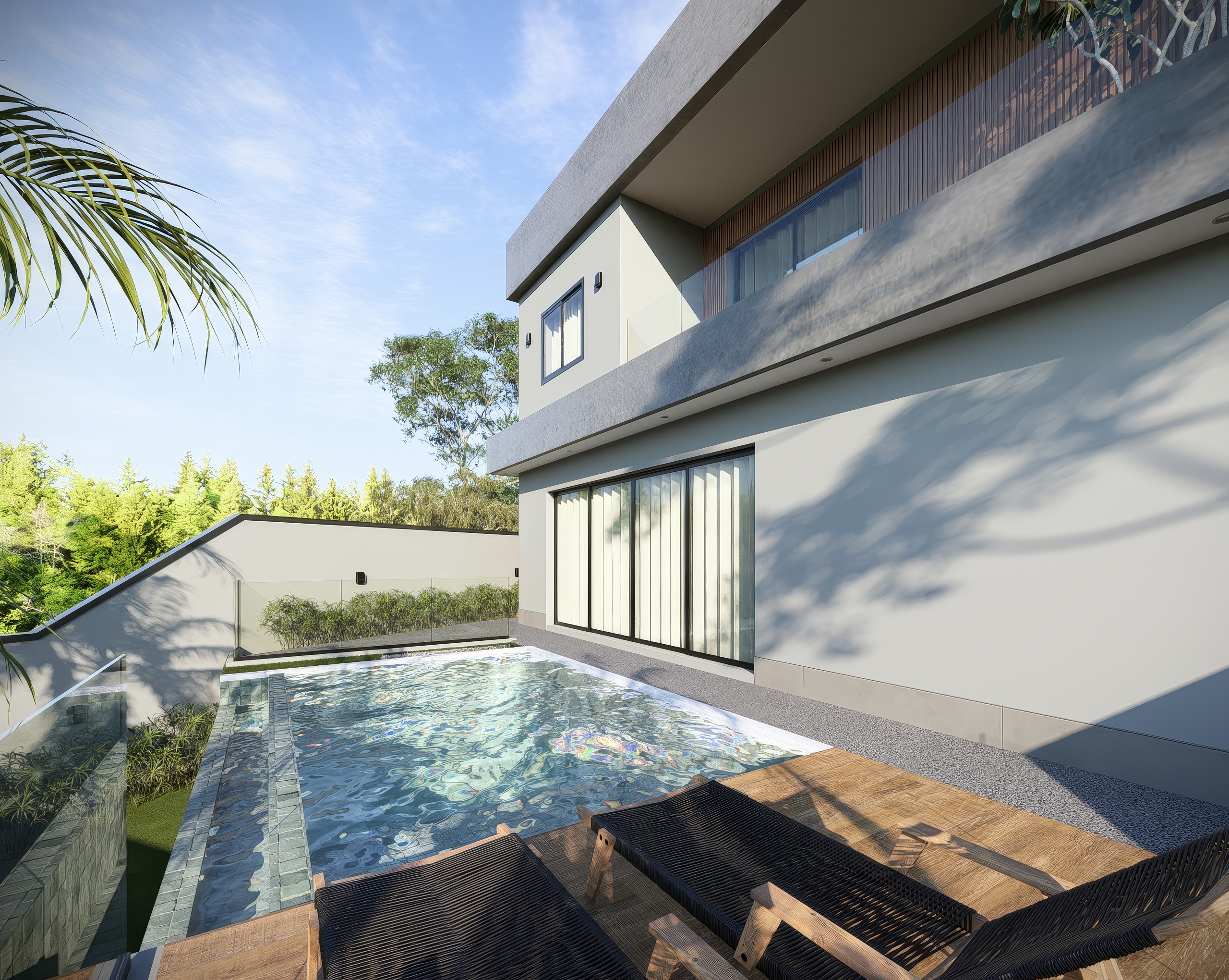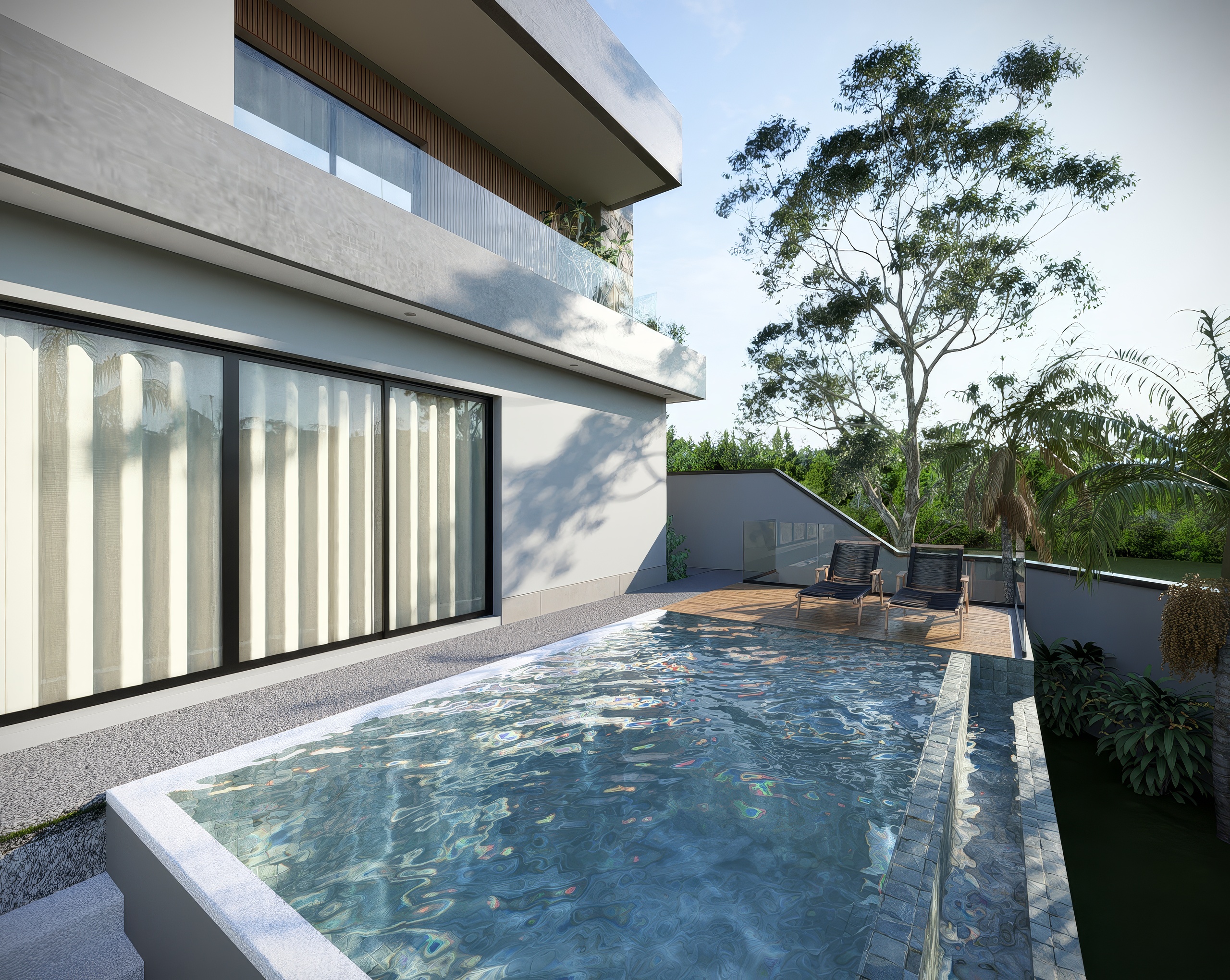 Piscina em um projeto que privilegia lazer, conforto e privacidade