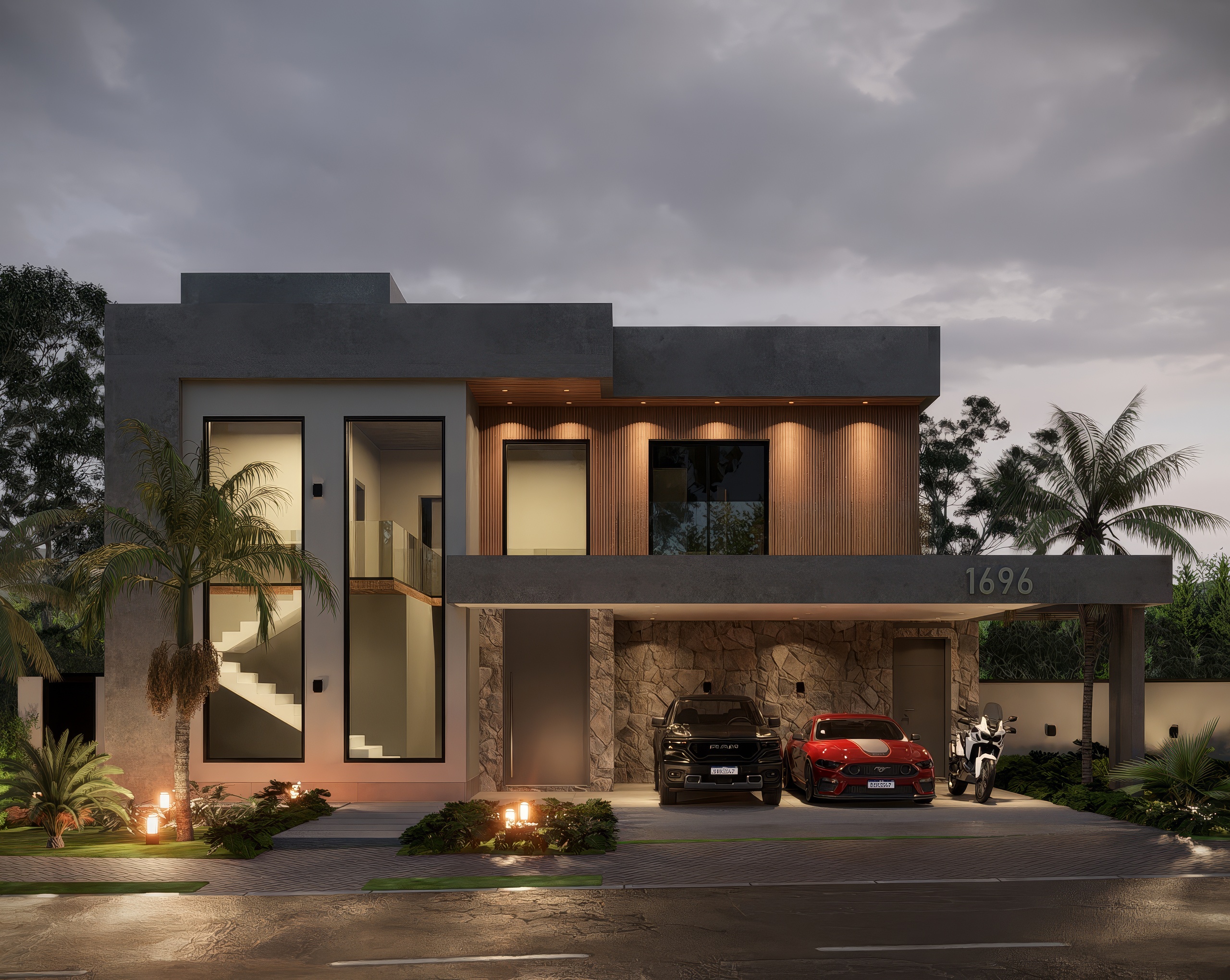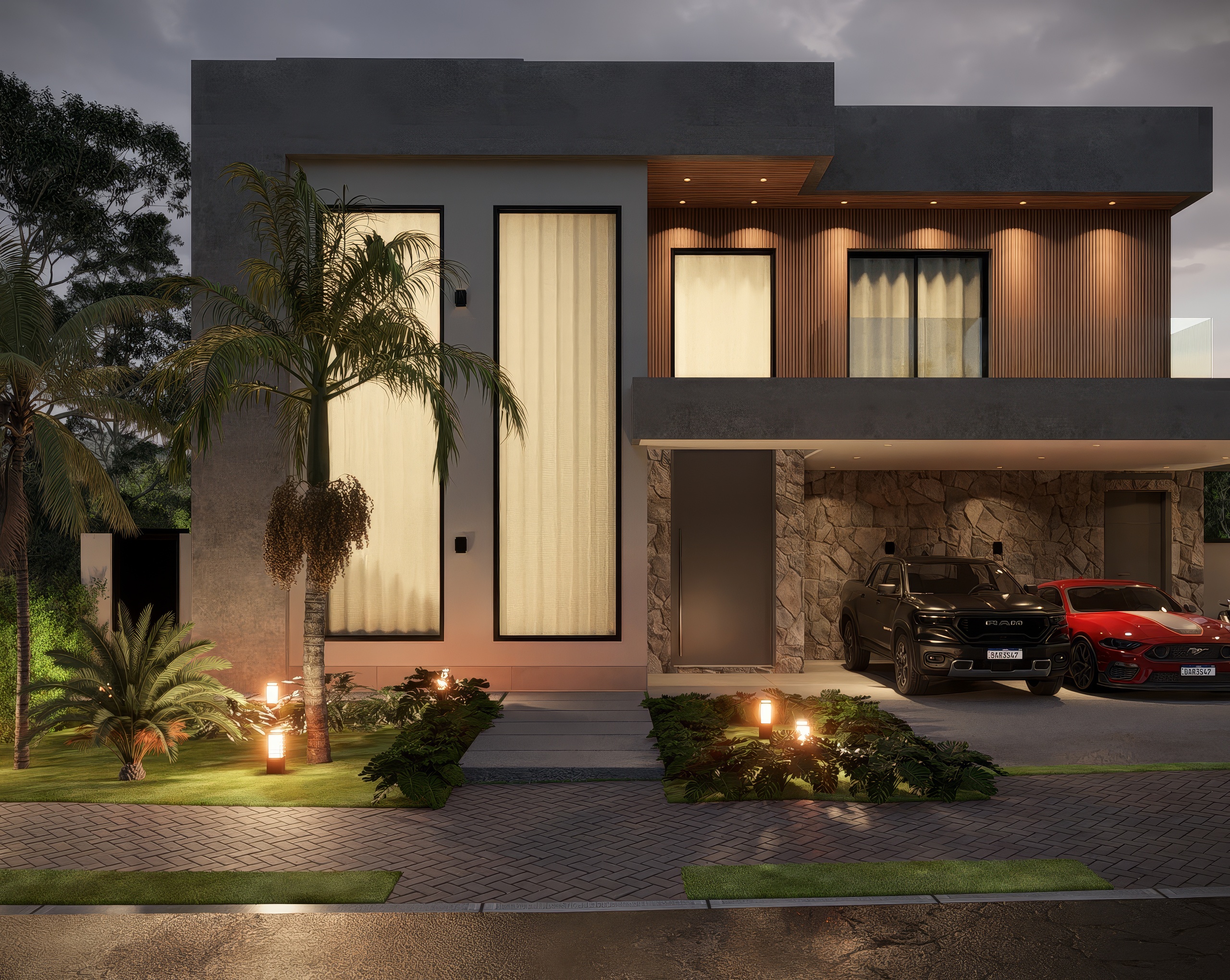 Este sobrado moderno, com linhas retas e arquitetura imponente, foi projetado para quem valoriza amplitude, integração dos ambientes e acabamento de alto nível.